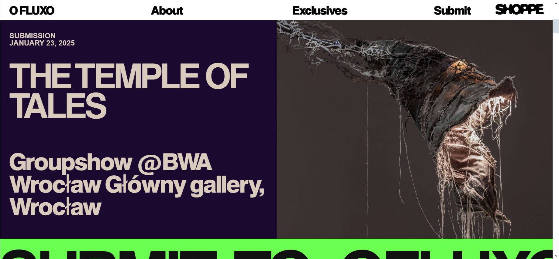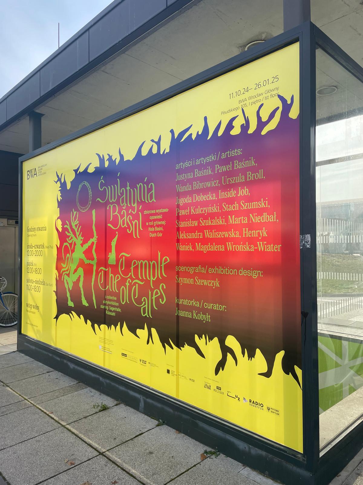 Wystawa Świątynia Baśni w galerii BWA Wrocław Główny to odwołanie do nieistniejącej dziś Sagenhalle, powstałej w 1903 roku w Szklarskiej Porębie. Wystawa przywołuje postać Ducha Gór, znaną z sudeckiej kultury ludowej. Prace artystyczne, stworzone w różnorodnych mediach, podkreślają rolę wyobraźni wobec kryzysów we współczesnym świecie, w którym potrzebujemy napisanych na nowo baśni.